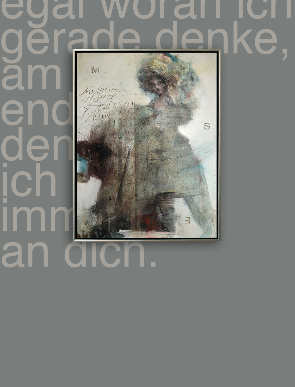 Arbeiten in Verbindung von klassischer Ölmalerei mit teilweiser Blattgoldunterlegung auf Holzmalfläche 11x16 cm. Eingebettet in ein Passepartout 30x40 cm, schaffe ich einen Raum für eine malerische und eine poetische Ebene. Verschiedene Themen, wie die 4 Jahreszeiten, Faces, Bäume, Traumbilder und die Verbindung mit Gedichten und Texten.
