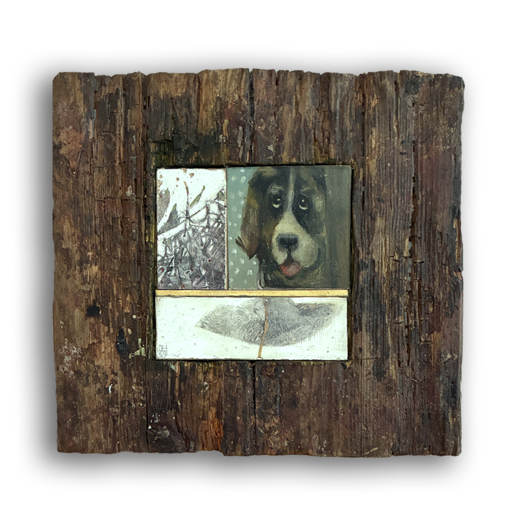 Ölfarbe auf zusammengesetzte Holzmalflächen, eingepasst und verleimt im Holzblock 24 x 30,5 cm, Tiefe 5 cm. | 2025