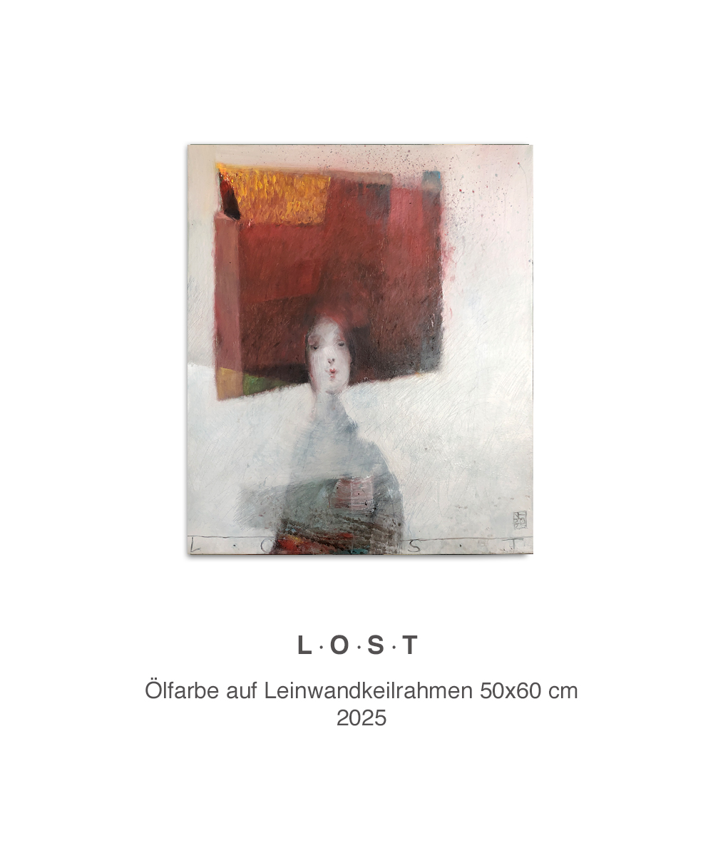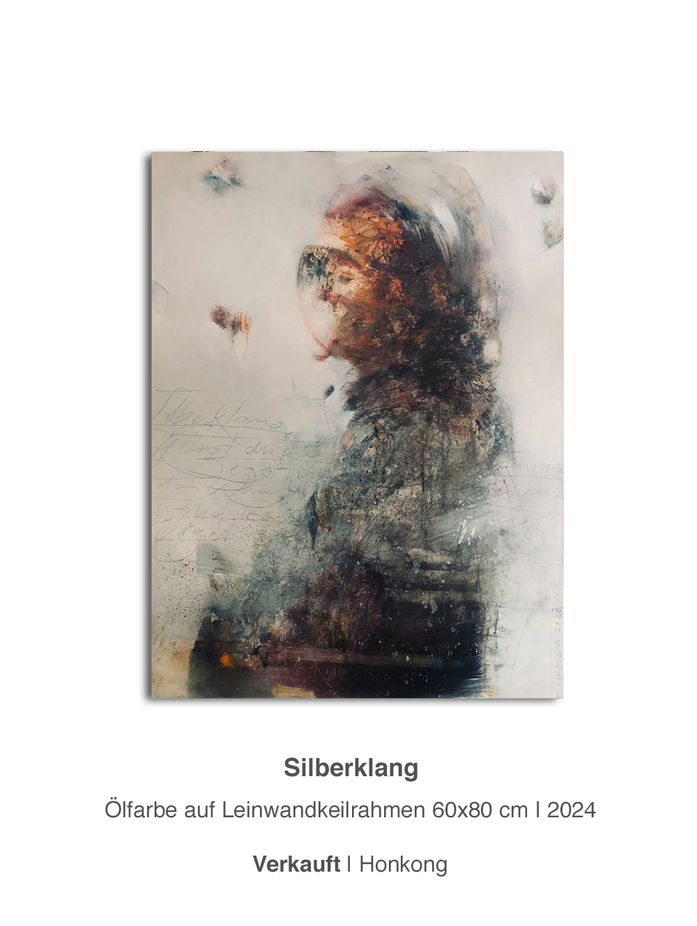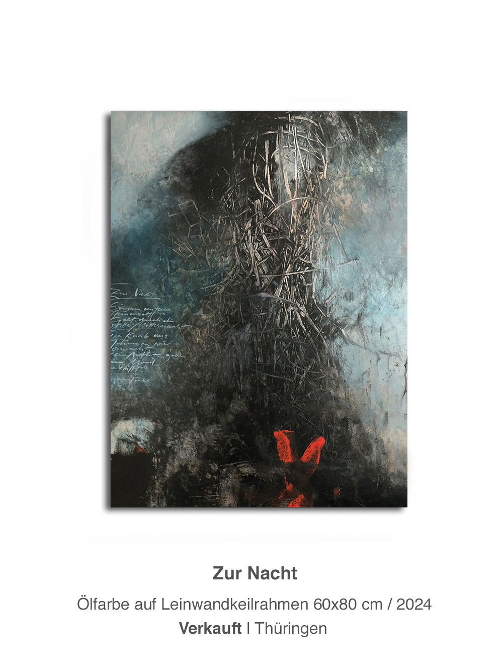 Ein Moment der Stille und des Innehaltens, so empfinde ich den Prozess beim Malen. Da entsteht wie von selbt eine Gestalt, ein Gefieder, ein Haus eine Farbstimmung, es gilt der Intuition zu folgen. Malen bedeutet auch, sich fallen zu lassen, aus sich selbst zu schöpfen. Eine Spur wird gefunden und dabei neue gelegt, die wiederum nicht alle gegangen werden, so ist das Bild letztlich eine Reduzierung auf das Wesentliche in sich selbst.