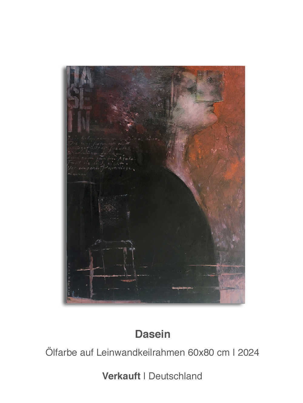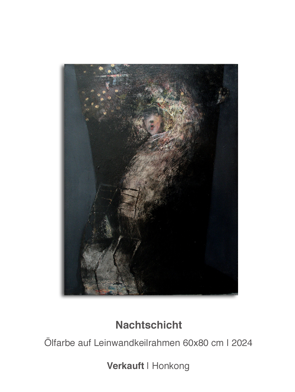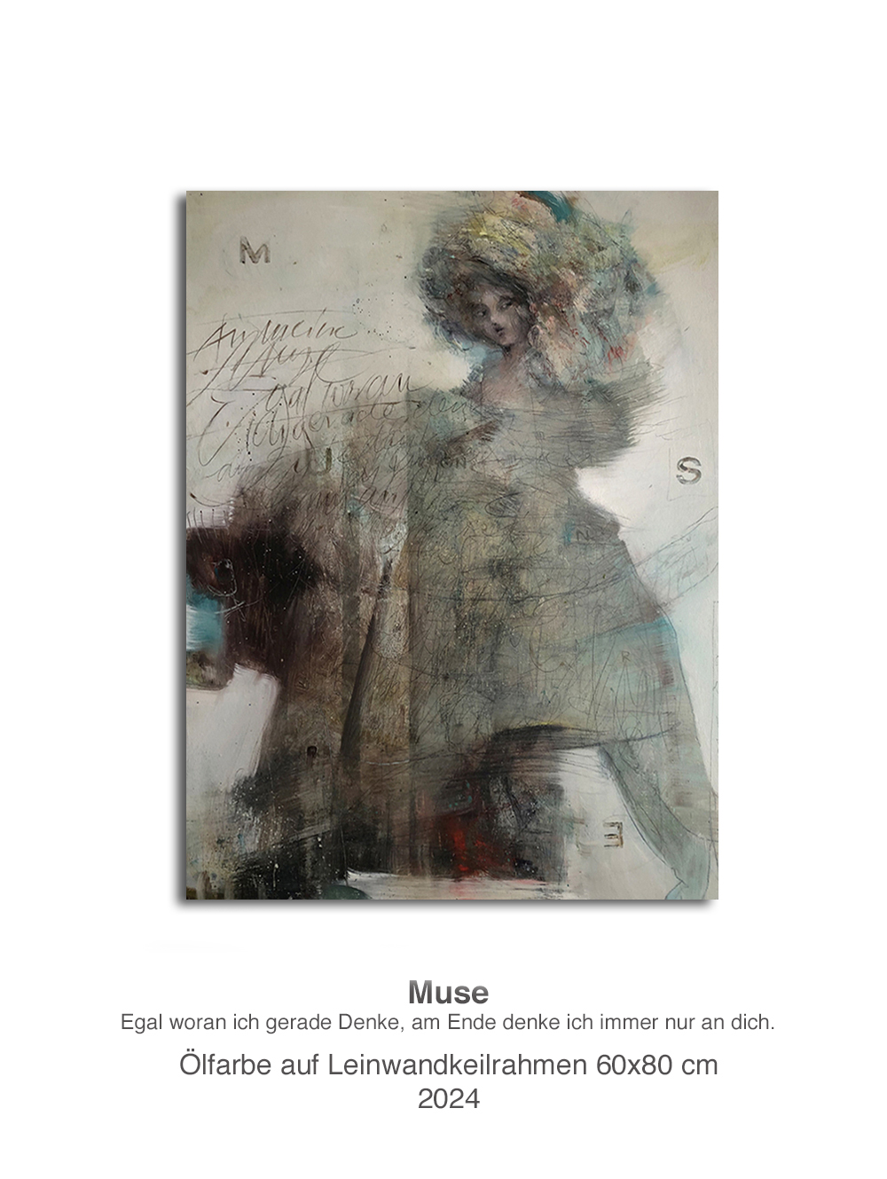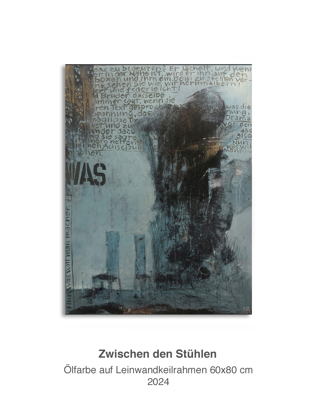 Ein Moment der Stille und des Innehaltens, so empfinde ich den Prozess beim Malen. Da entsteht wie von selbt eine Gestalt, ein Gefieder, ein Haus eine Farbstimmung, es gilt der Intuition zu folgen. Malen bedeutet auch, sich fallen zu lassen, aus sich selbst zu schöpfen. Eine Spur wird gefunden und dabei neue gelegt, die wiederum nicht alle gegangen werden, so ist das Bild letztlich eine Reduzierung auf das Wesentliche in sich selbst.